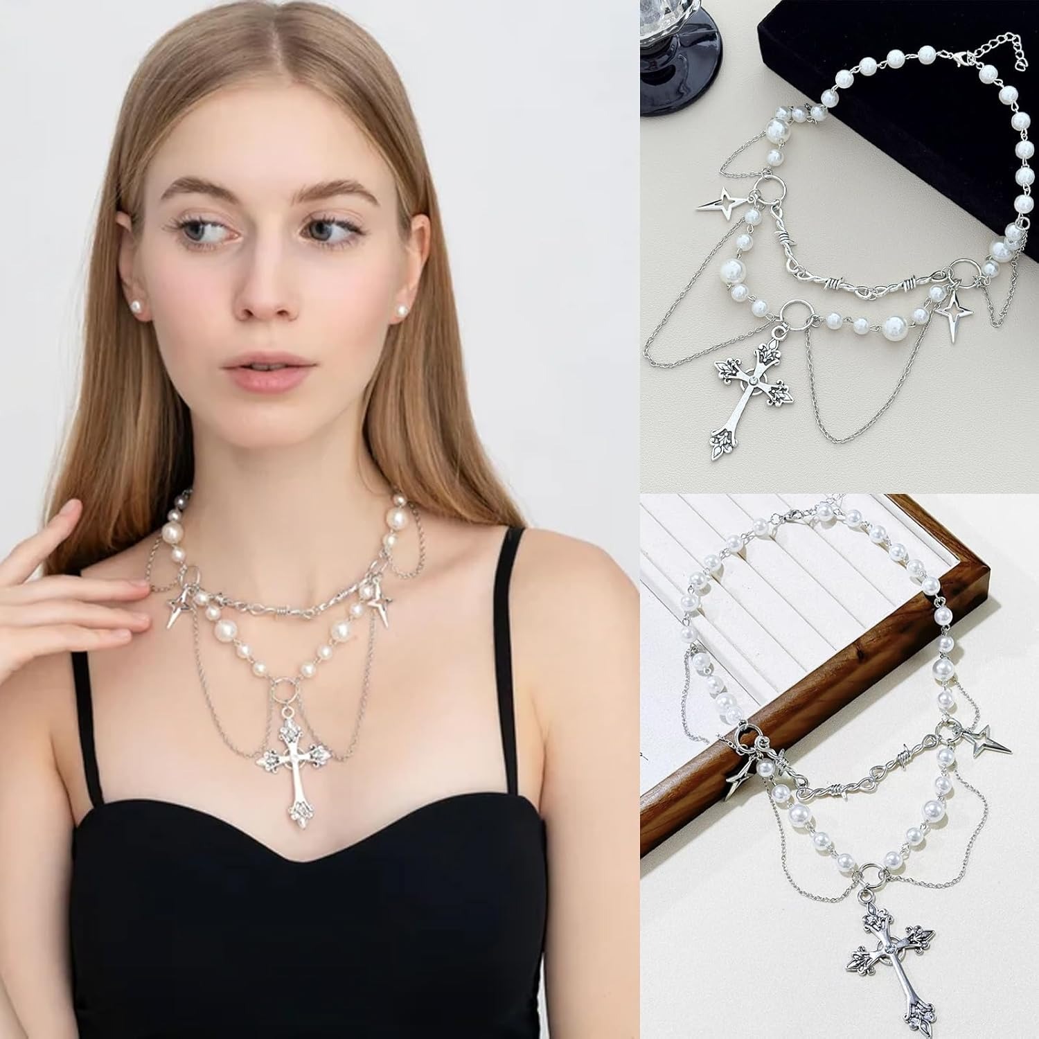 - Elegant Layered Design: This stylish layered necklace for women features a unique aesthetic design with multiple pendants; The gothic jewellery look adds a trendy touch to any outfit, making it perfect for daily wear or special occasions